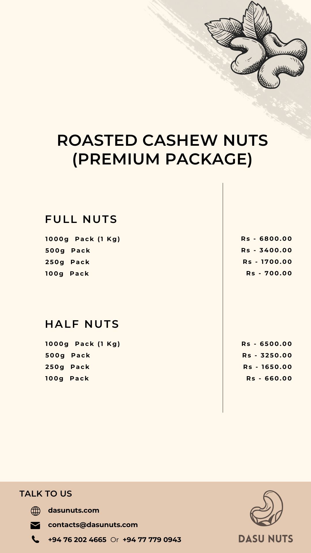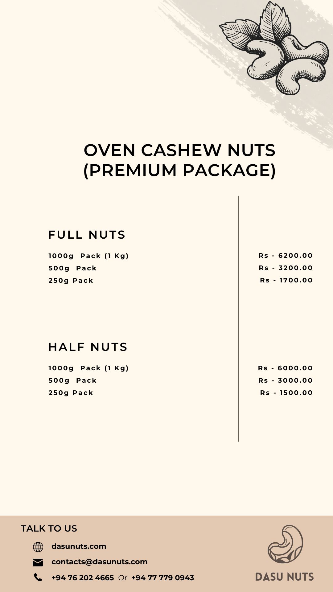 We proudly offer 100% Sri Lankan cashews and are